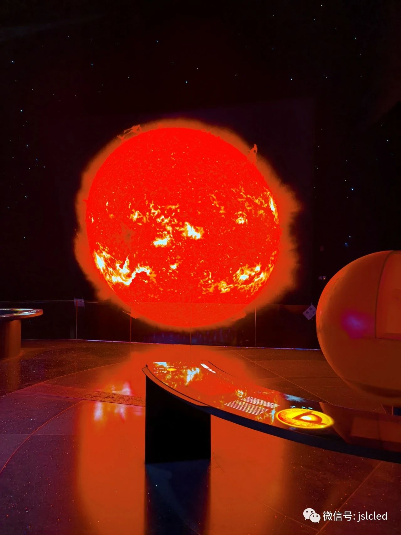 江蘇亮彩憑借豐富的項(xiàng)目經(jīng)驗(yàn)及過硬的產(chǎn)品品質(zhì),獲得了參與上海天文館的大屏建設(shè)機(jī)會,為場館承制了兩塊LED顯示屏,分別是“家園”主題展區(qū)內(nèi)太陽屏和拱形屏。